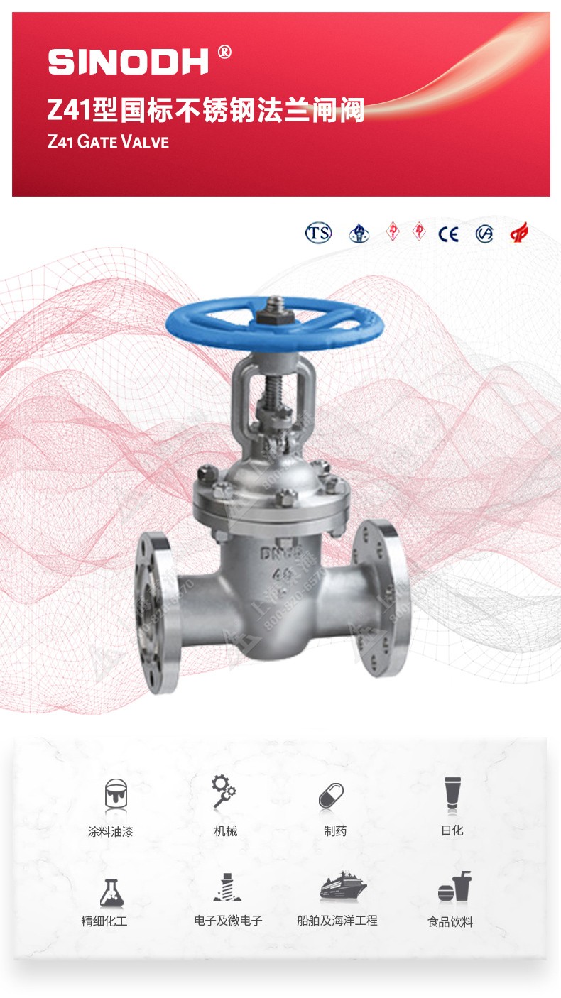Z41型不锈钢闸阀,为乐竞网页版登录入口自主研发生产。本产品是一种最常见的启闭阀,利用闸板的上下工作来接通(全开)和截断(全关)管道中的流体介质。此类闸阀广泛用于自来水、污水、建筑、石油、化工、食品、医药、轻纺、电力、船舶、冶金、能源系统等体管线上作为调节和截流装置使用。